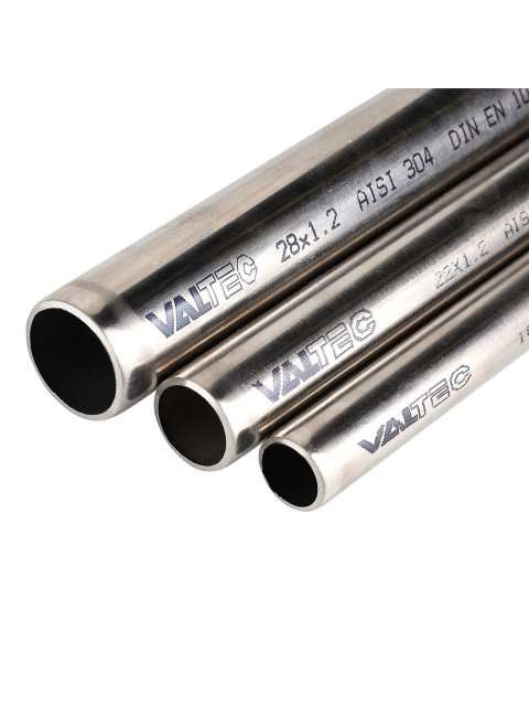 Труба предназначена для использования в составе инженерных и технологических трубопроводов, транспортирующих жидкости и газы, неагрессивные по отношению к легированной стали AISI 304. Свойства этого сплава позволяют выпускать и широко применять трубы с уменьшенной толщиной стенки, осуществляя их монтаж с помощью пресс-фитингов. Труба из нержавеющей стали VALTEC изготавливается в соответствие со стандартом DIN EN 10312 на современном высокотехнологичном предприятии. Форма поставки – отрезки длиной 4 м.