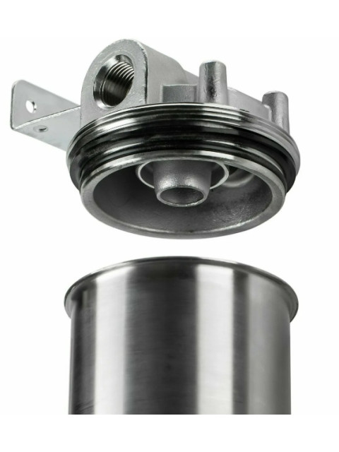 Корпус изготовлен из высококачественной нержавеющей стали, предусмотрено сливное отверстие для удобной замены картриджа, рассчитан на давление до 8 атм. Размер: 330х110мм.