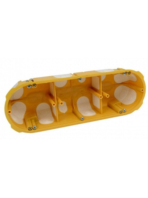 Конструкция коробки двухкомпонентного литья, не содержащая галогенов, предназначена для использования в помещениях с полыми стенками. Ввод кабеля осуществляется путем прорыва входного отверстия на гибких мембранах и протягивания кабеля в отверстие. Коробка соответствует требованиям для установки в звуконепроницаемых стенах с уровнем шума до 69 дБ.