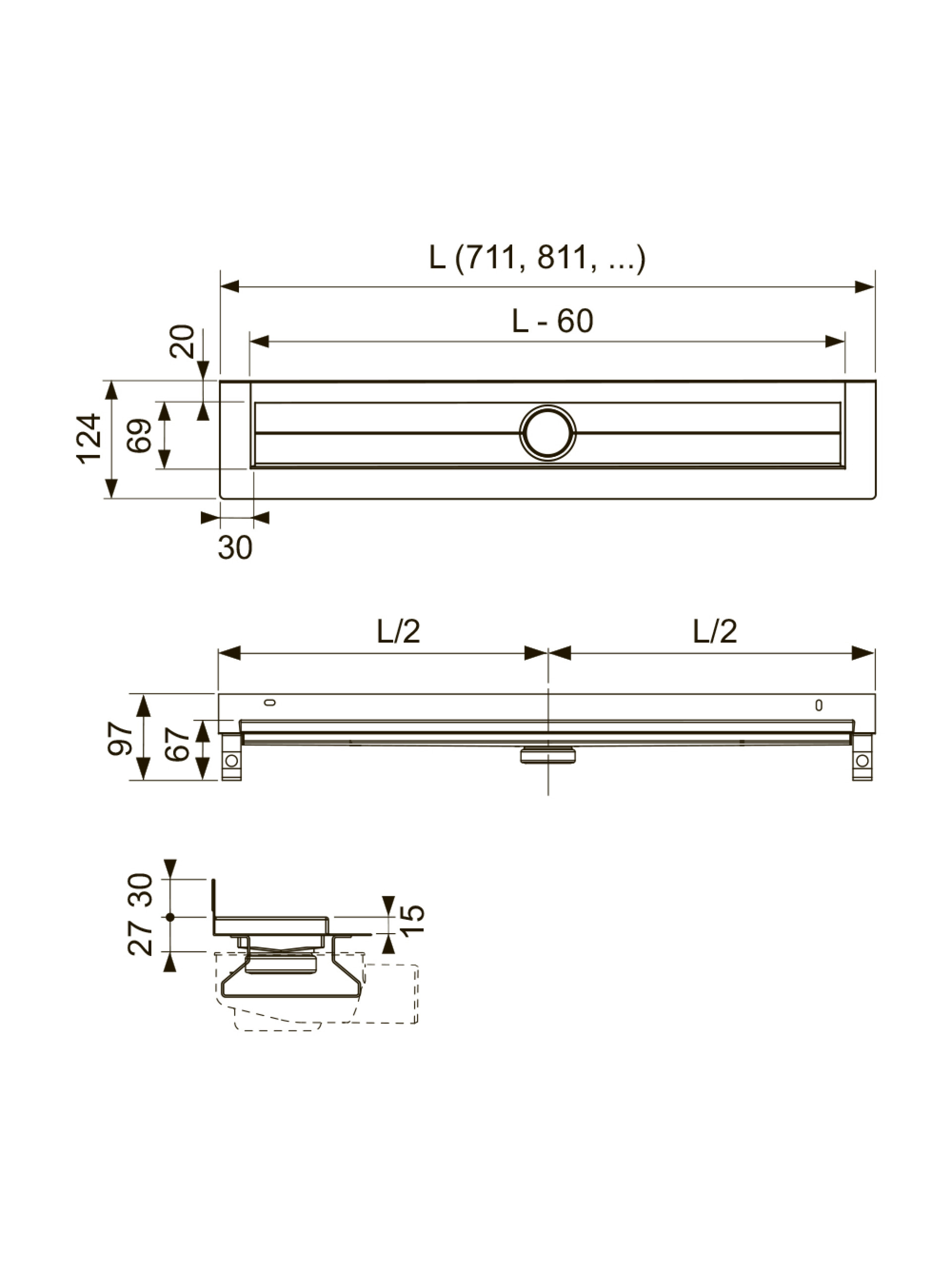 Душевой канал TECEdrainline 700 мм для пристенного монтажа с гидроизоляционной лентой Seal System 600701