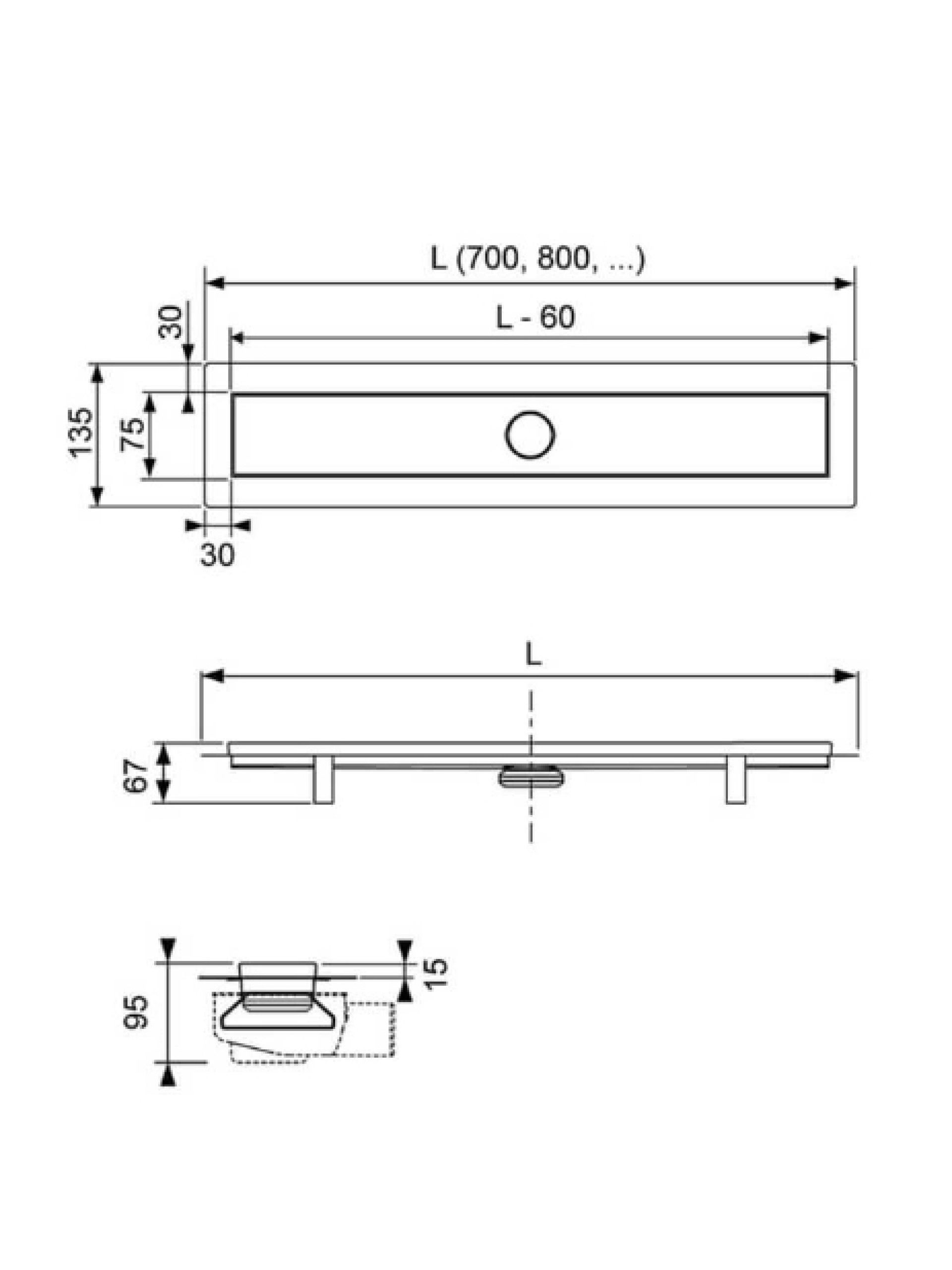 Комплект TECElinus для монтажа дренажного канала 2 в 1 с декоративной решеткой WING, со стаканом с мембраной, длина 900 мм KL9003